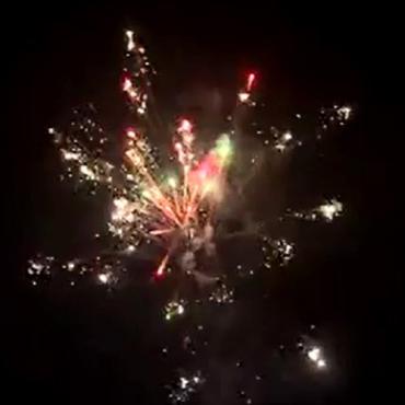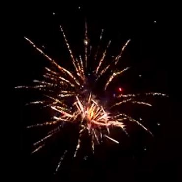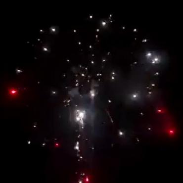 Красная звезда разрывается красными звездами с золотыми хвостами, переходящими в треск и белое мерцание.