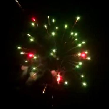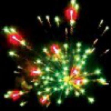 Красная и зеленая звезды разрываются красными и зелеными, белыми мерцающими звездами.