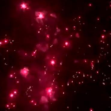 Красная звездв разрывается красными мерцающими звездами, с переходом в треск.