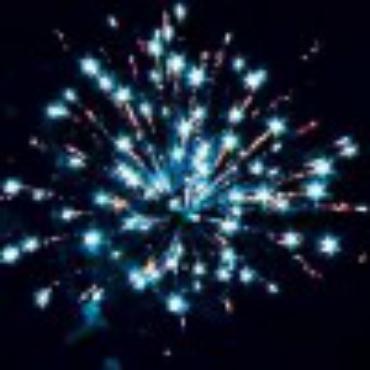 Залп серебряных комет с мерцающими, шуршащими хвостами разрывается золотыми хвостами и синими звездами.