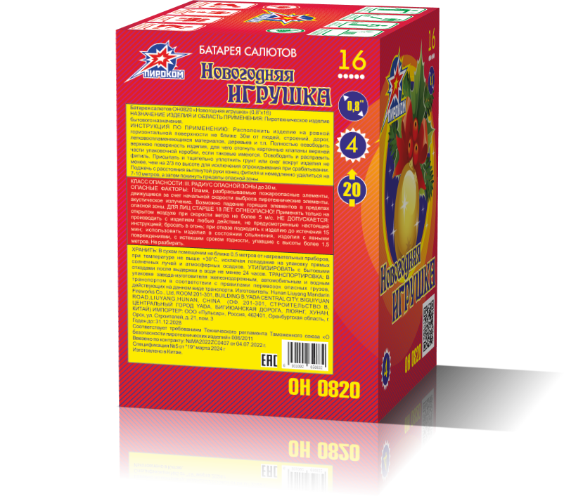 Фейерверк "Новогодняя Игрушка" — это волшебное представление, которое переносит вас в атмосферу праздничного чуда. Яркие разноцветные огни взмывают ввысь, словно сверкающие ёлочные украшения, наполняя небо радостью и теплом. Каждый взрыв рассыпается в каскад мерцающих звёзд, вызывая ощущение зимней сказки и новогоднего волшебства. "Новогодняя Игрушка" — идеальный способ встретить Новый год с восторгом и весельем, создавая незабываемые моменты для всей семьи.