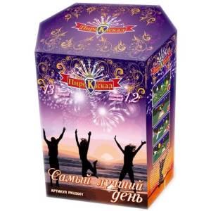 Пурпурные георгины с зеленым мерцанием; парчовые короны с красным мерцанием; финал: эффект тысяча хризантем с серебристыми пальмами по центру.