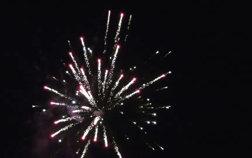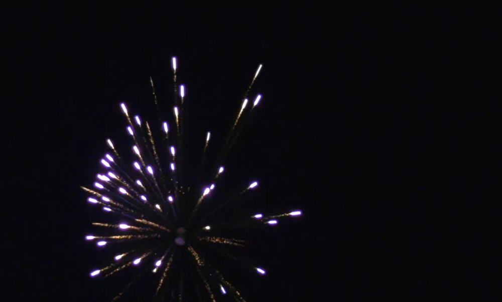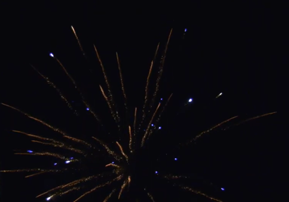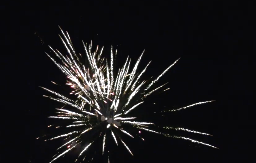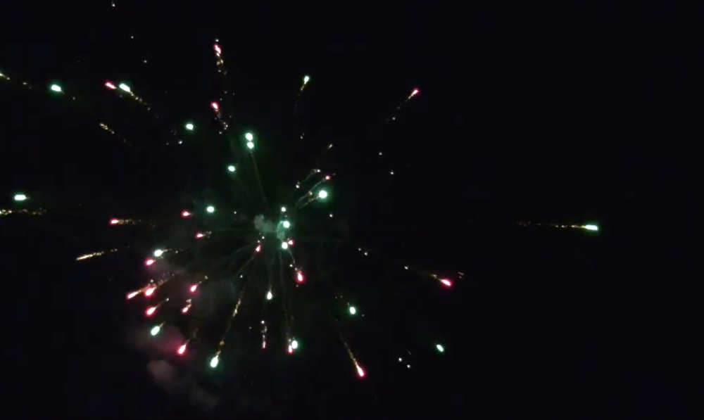 2. Зеленый хвост переходит в красно-зеленые звезды с трещащим дождем.