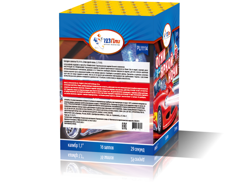 "Огни Яркой Ночи" - это фейерверк, который напоминает захватывающее приключение в огнях ночного города. Как езда на элегантной машине, каждый залп этого бюджетного фейерверка погружает в волшебный мир оттенков и света.
