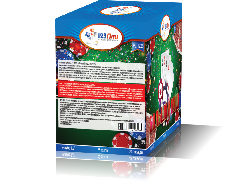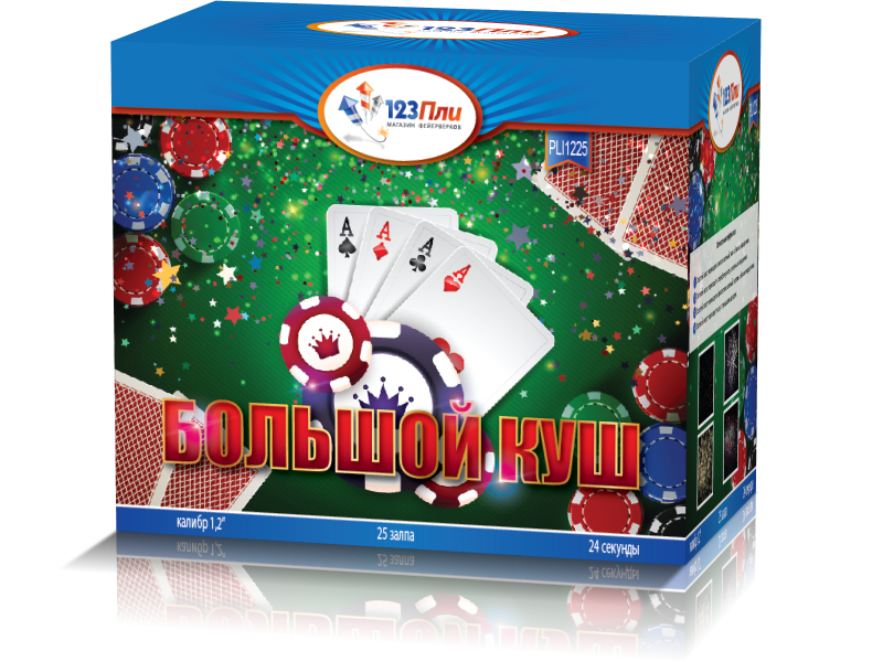 Мечтаете сорвать большой куш? Выиграть миллион в казино, а то и миллиард? Чтож, мечтать не вредно! Почувствовать вкус победы вы можете уже сегодня, ведь он ощущается в каждом из 25-х залпов фейерверка "Большой куш". Купите этот красочный салют, который поможет ощутить себя настоящим победителем и любимчиком фортуны!