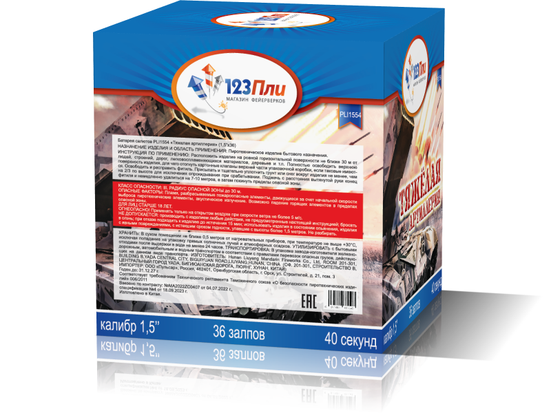 Купив этот салют, вы сможете в полной мере насладиться мощью артиллерийских залпов! Ведь эта батарея имеет один из мощнейших калибров, представленных в нашем ассортименте!