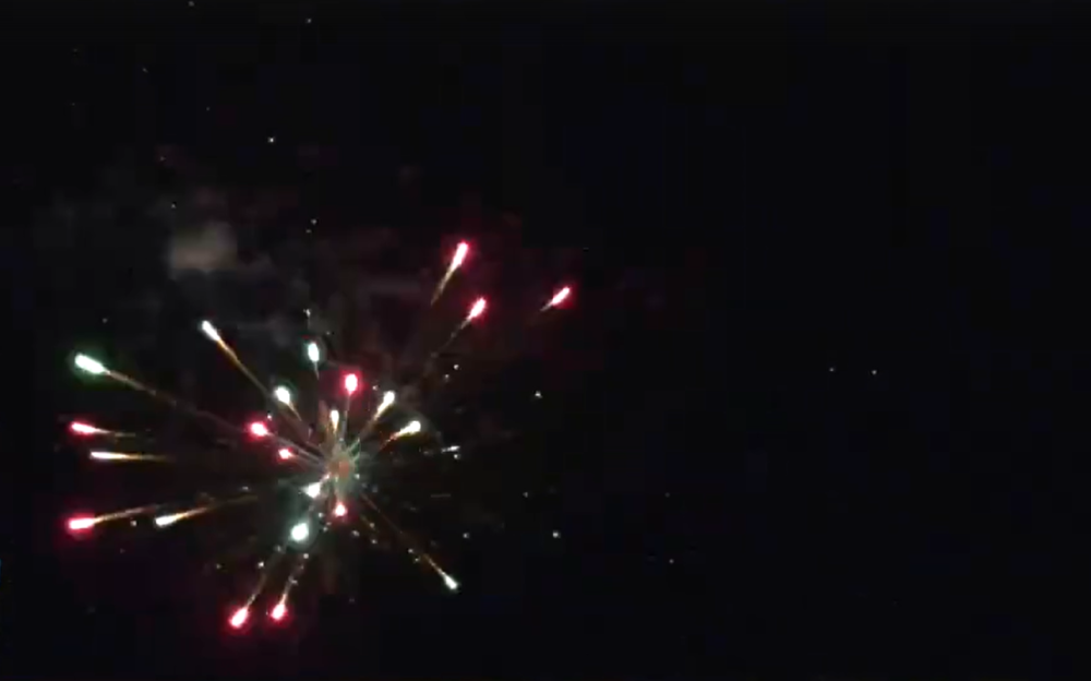 1. Разрывы разноцветными сферами, красными, зелеными кометами.