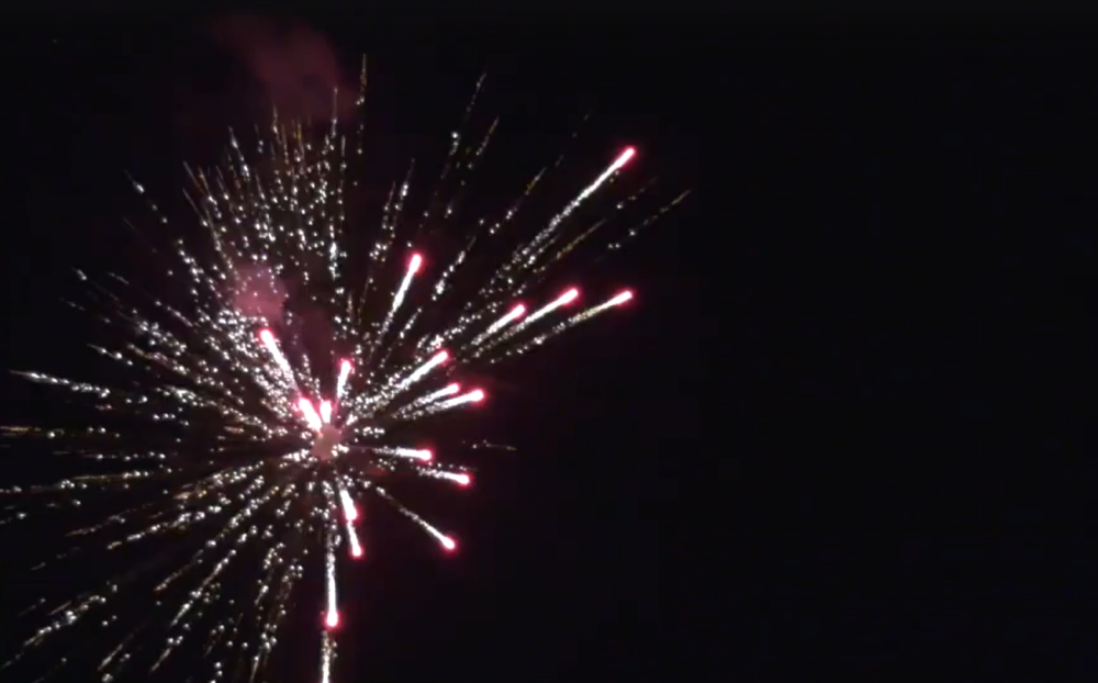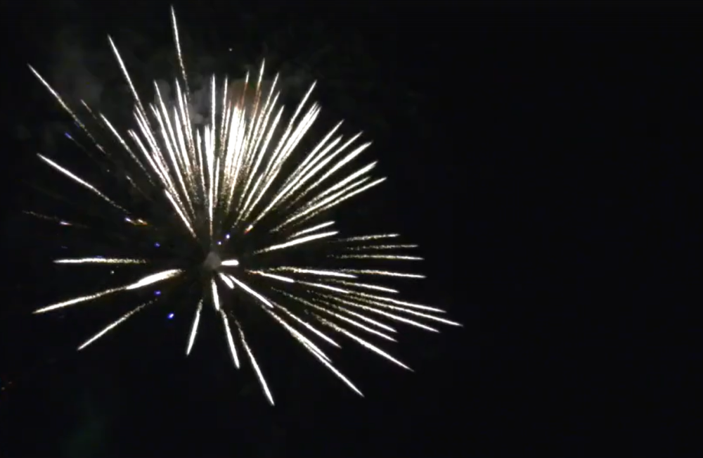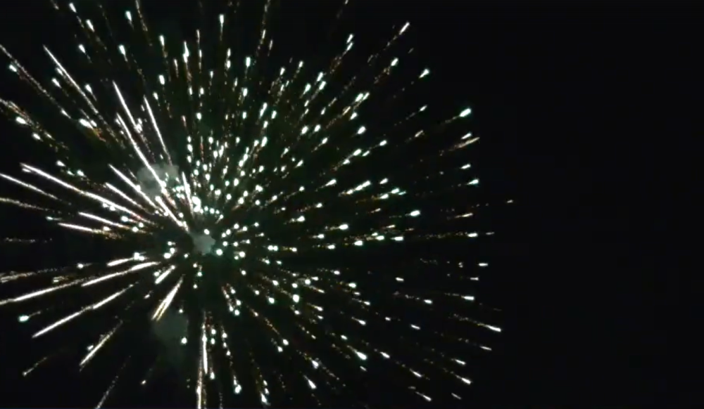 3. Разрывы золотыми кометами с красными и зелеными звездами на концах и мерцающими белыми и трещащими звездами.