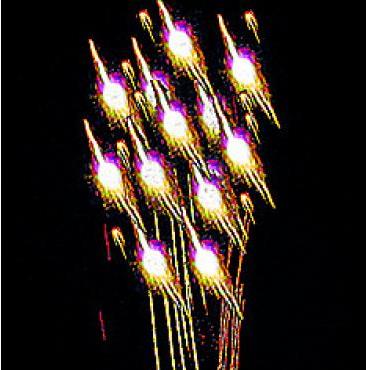 Маленькие ракеты с резким пронзительным свистом улетают на несколько метров и затем взрываются с резким хлопком и огненной вспышкой.