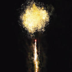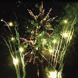 5. Серебряная вертушка разрывается красно-зеленой сферой (пион) и треском.