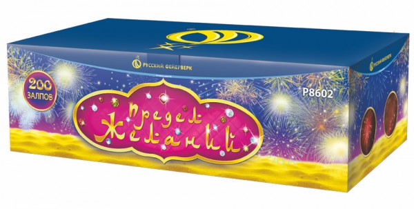 Залп серебряных комет со шлейфом разрывается красными мерцающими звездами, переходящими в облако золотых трещащих искр.