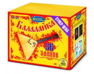 Красочная концовка: залп разрывается золотыми хвостами и облаком трещащих разрывов. (60-70 сек., до 20 м)