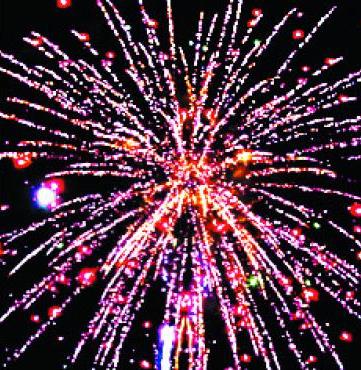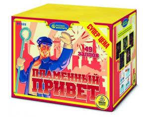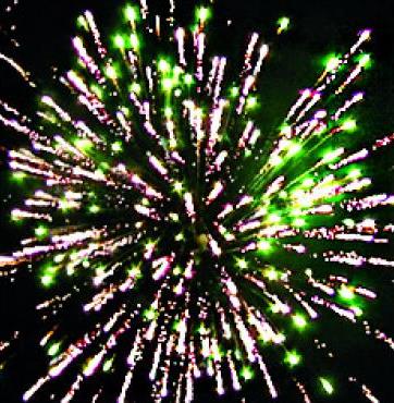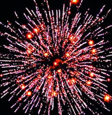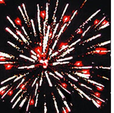 Красочная концовка: залп разрывается золотыми хвостами и облаком трещащих разрывов. (60-70 сек., до 20 м)