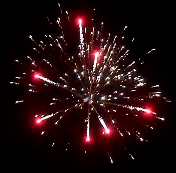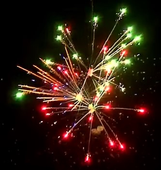 Белые пульсирующие и зеленые огни с форсами в центре.