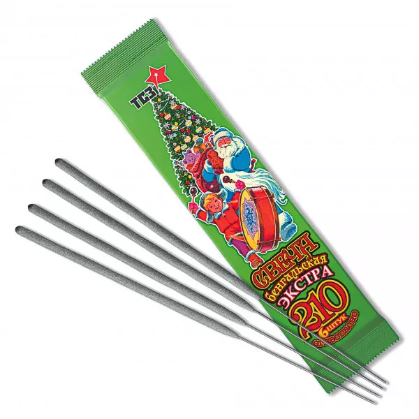 На первый взгляд эти бенгальские огни ничем не отличаются от других свечей. Но это лишь на первый взгляд, ведь приписка «Экстра» означает, что перед нами бенгальские свечи увеличенной толщины. На каждую металлическую палочку нанесено больше пиротехнической смеси, чем обычно, а это значит, что гореть такая палочка будет более эффектно, а искр будет намного больше, чем в случае с обычными свечами.