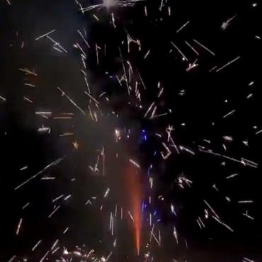 Поток белых разлетающихся трещащих вспышек-искр и синих искр (до 45 сек., до 3 м).