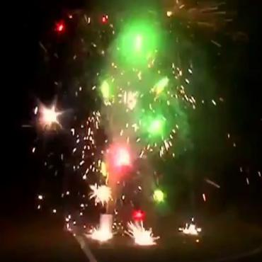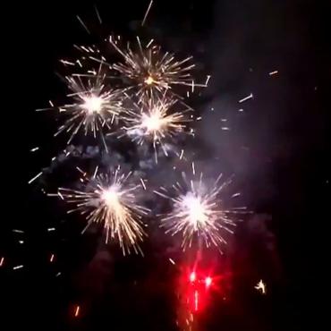 Золотые трещащие вспышки, зеленые, красные огни и белое мерцание.