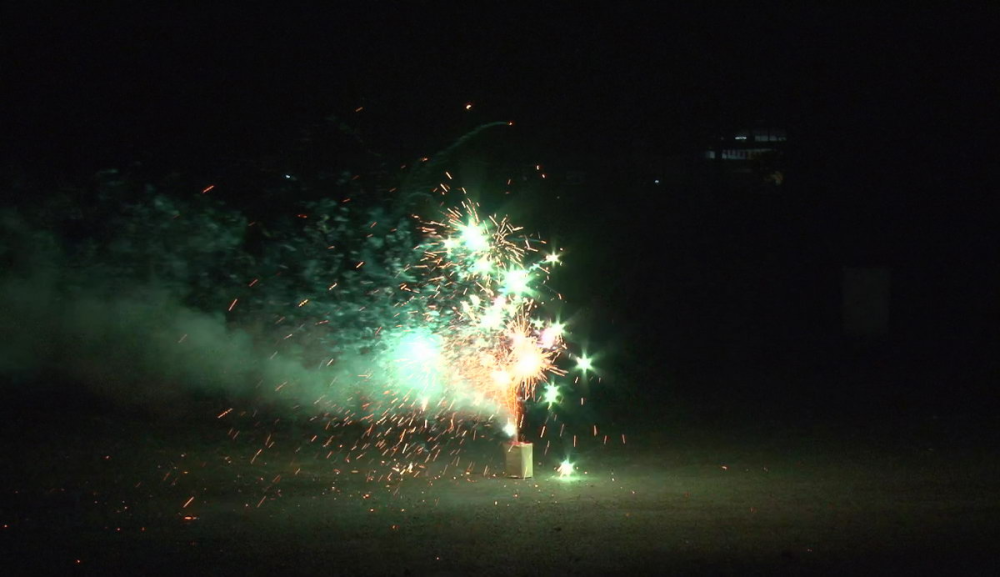 1. Поток из зеленых мерцающих и золотых трещащих разлетающихся огней.
