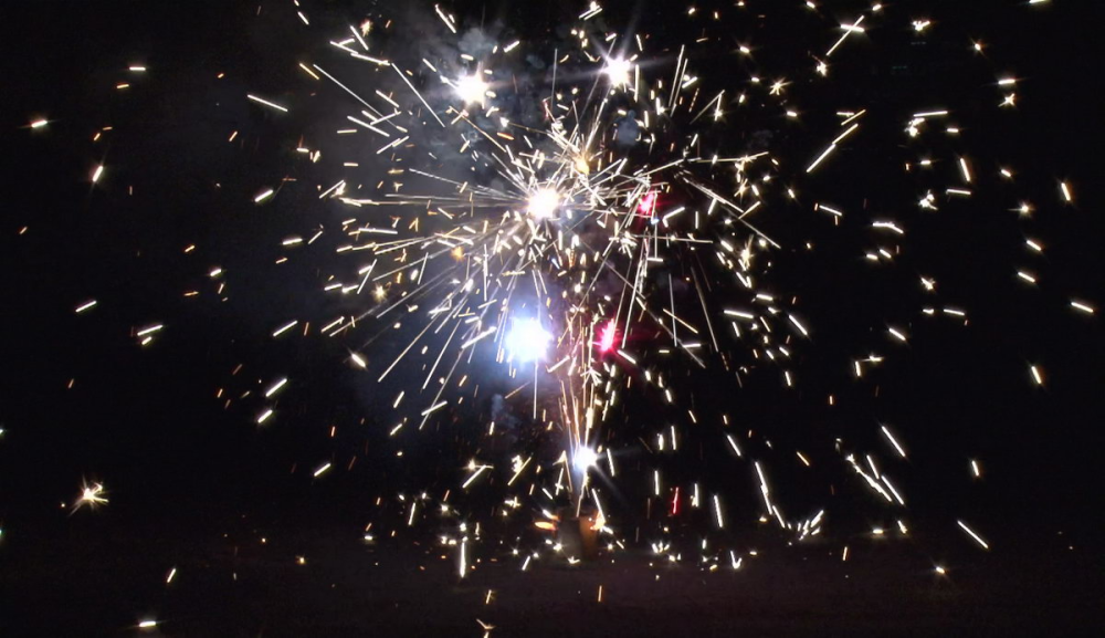 Фонтан "Тумба-юмба" от "Русской пиротехники" наполняет воздух магией и радостью, словно каждая искра приносит с собой частичку счастья. Комбинация серебряных трещащих искр и красных мерцающих огней создает впечатление праздника и веселья.