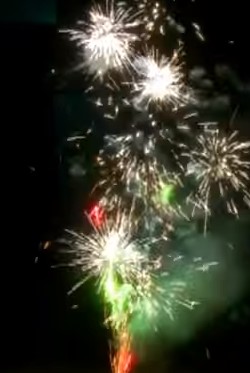 Красное пламя в основании и поток трещащих, красных и зеленых огней.