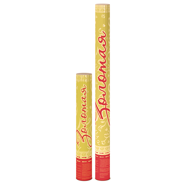 Пневмохлопушка "Праздничная" с красивым металлизированным золотым конфетти позволяет создать эффект волшебного мгновения. Запаса конфетти в пнемохлопушке "Праздничная" длиной 30 см достаточно, чтобы засыпать площадь примерно 6-7 квадратных метров.