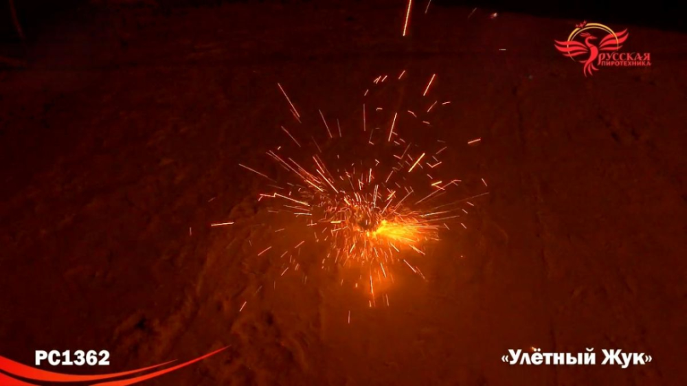 Петарда "Улетный жук" -при воспроизведении она начинает вращаться, образуя красивый круг из красного, зеленого и желтого огня. Затем петарда начинает раскалываться с трещащим звуком, изливая тысячи мерцающих искр, создавая завораживающий эффект и захватывая внимание. "Улетный жук" - это идеальное дополнение к любому празднику или мероприятию, добавляющее волшебства и огненной красоты в вечерние развлечения.
