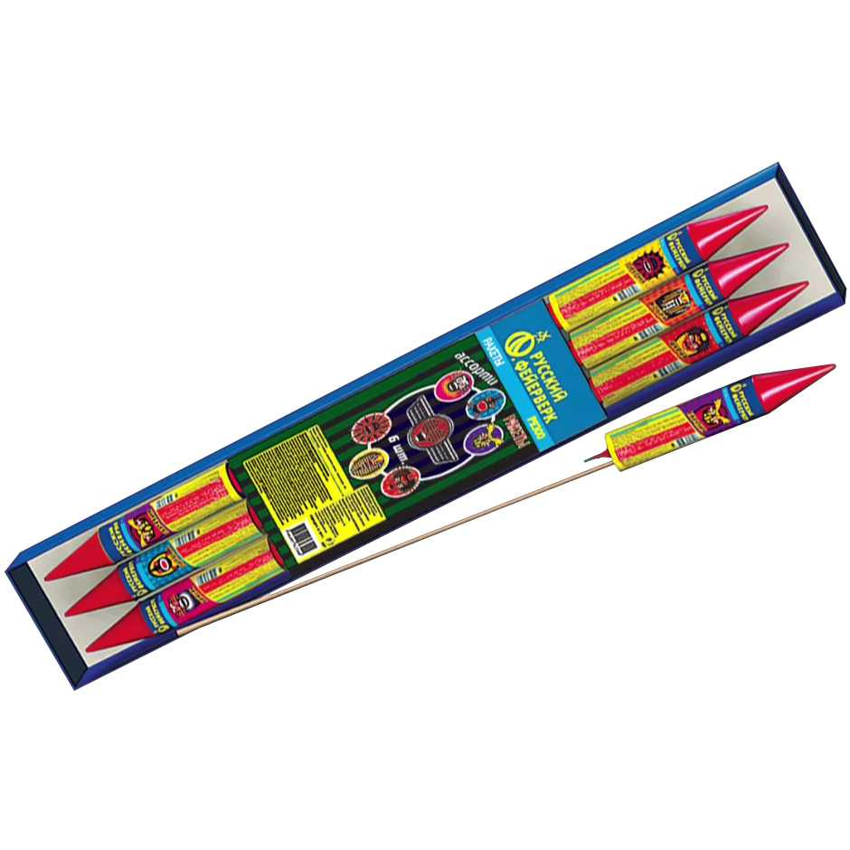 Набор ракет "Ассорти" порадует вас разнообразием эффектов - ведь каждая из ракет имеет свой уникальный эффект!