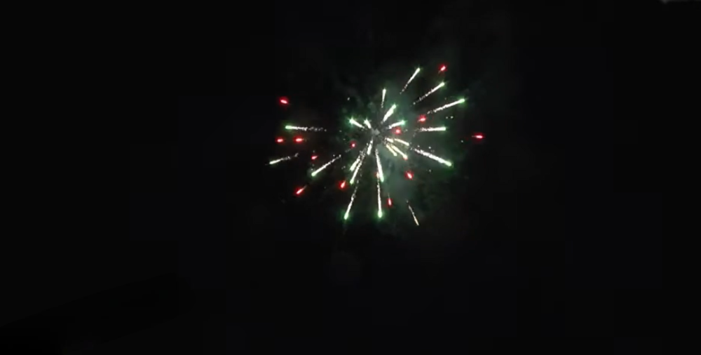 4. Красные и зеленые звезды с пышными хвостами (кокос) и облако треска (трещащий дождь).