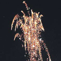 Пять разрывов золотыми искрами с треском.