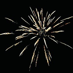 Пять выстрелов, разрывающихся ниспадающими золотыми звездами с искристыми хвостами.